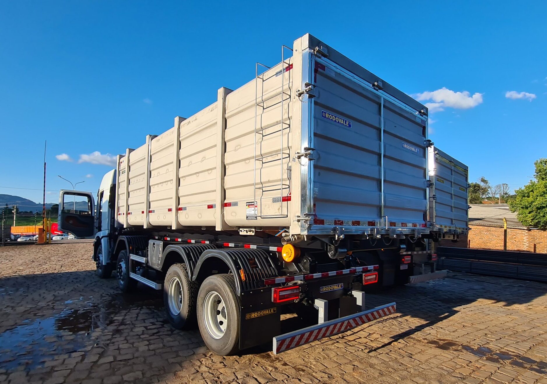Com estrutura reforçada e sistema basculante, a carroceria proporciona eficiência na descarga e facilidade na higienização, atendendo com excelência às exigências do setor de processamento animal e indústrias de reciclagem.