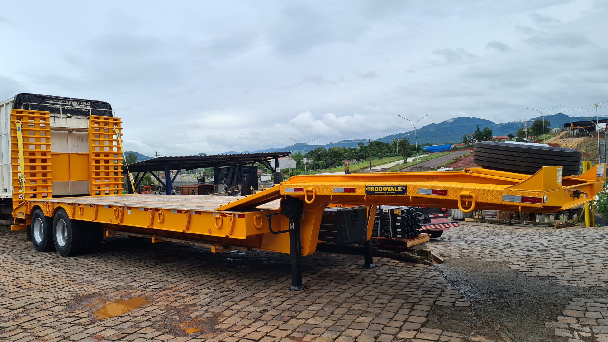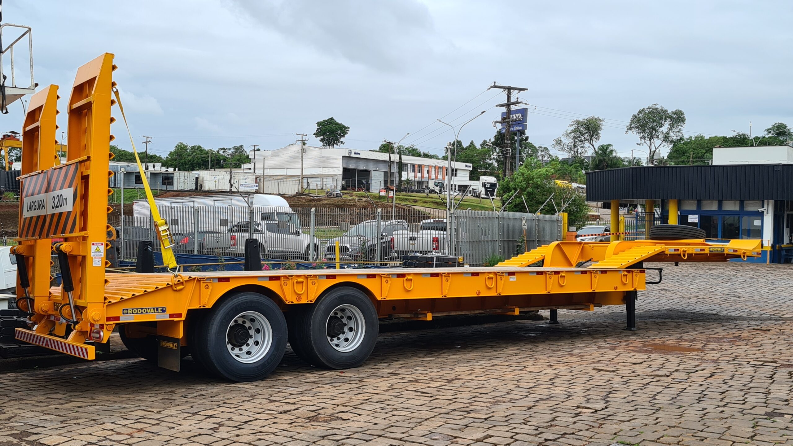O Semirreboque Carrega Tudo 2 Eixos Plana da Rodovale é especialmente desenvolvido para o transporte seguro e eficiente de cargas indivisíveis, como máquinas pesadas, transformadores e equipamentos industriais de grande porte.