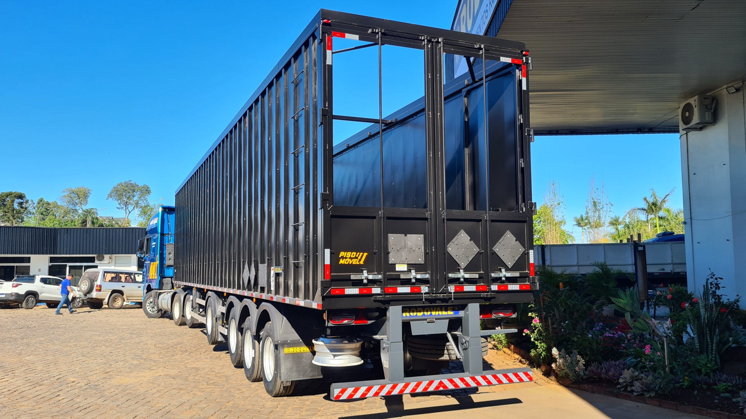 O Semirreboque Piso Móvel/Cavaqueira Plano 4 Eixos da Rodovale foi desenvolvido para oferecer máxima eficiência no transporte de cargas a granel de baixa densidade, como cavacos de madeira, biomassa, resíduos agrícolas, recicláveis e outros materiais soltos.